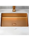 Ürünle birlikte gelen prinç pop-up sifon, lavabonun rose gold estetiğini tamamlayan sağlam ve kullanışlı bir parçadır. Kolay açılıp kapanabilen yapısı ile su tahliyesinde yüksek performans sunarken, uzun yıllar boyunca paslanma veya deformasyon yaşamadan işlevini sürdürür.
