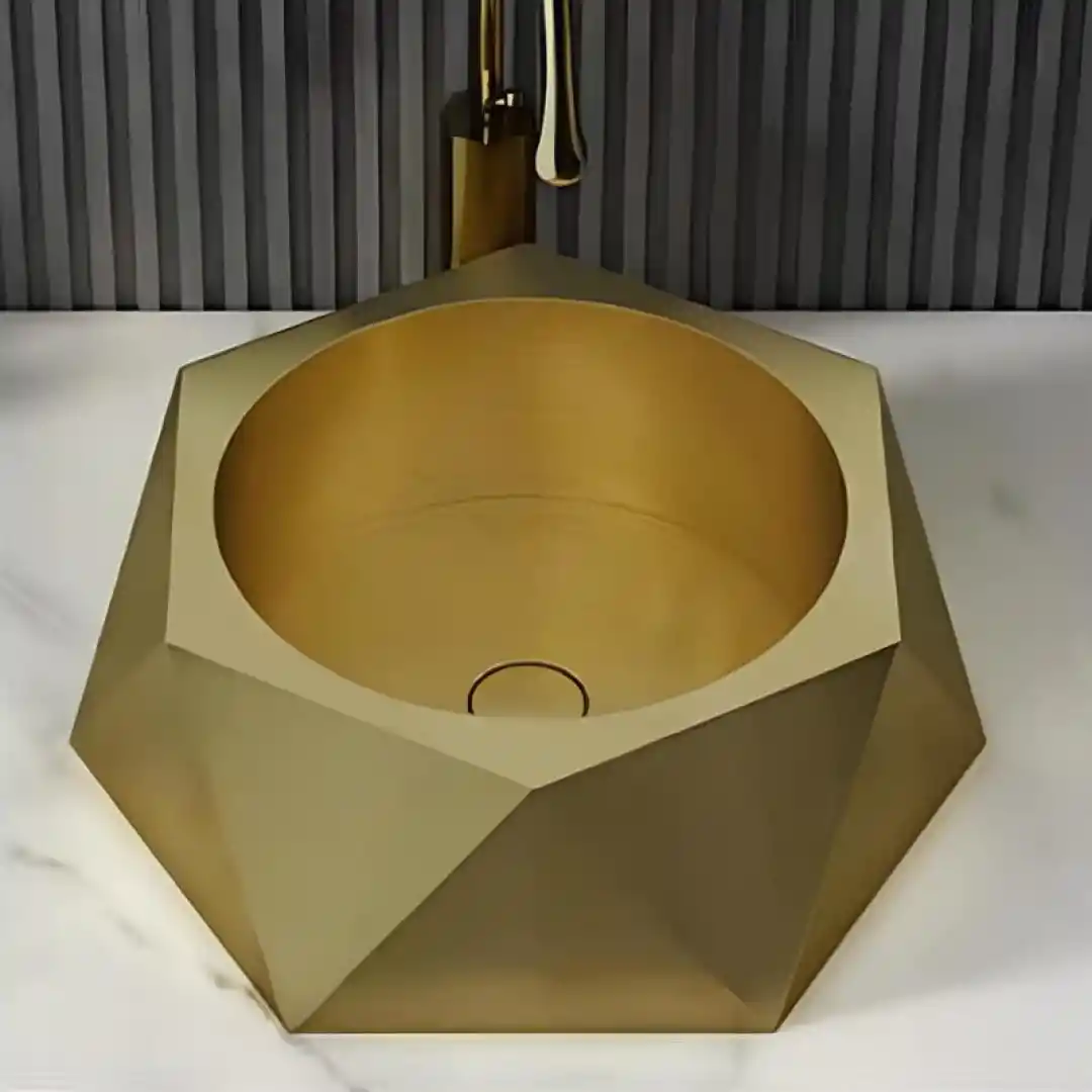 Schnelle 72 SCH-B5508 Antique, modern banyolar için tasarlanmış, estetik ve dayanıklılığı bir araya getiren tezgah üstü hegzagon çelik lavabo modelidir. 1.5–3 mm kalınlığındaki 304 kalite paslanmaz çelikten üretilmiş olup, altıgen formu ve antik bronz PVD kaplamasıyla dikkat çeker.
