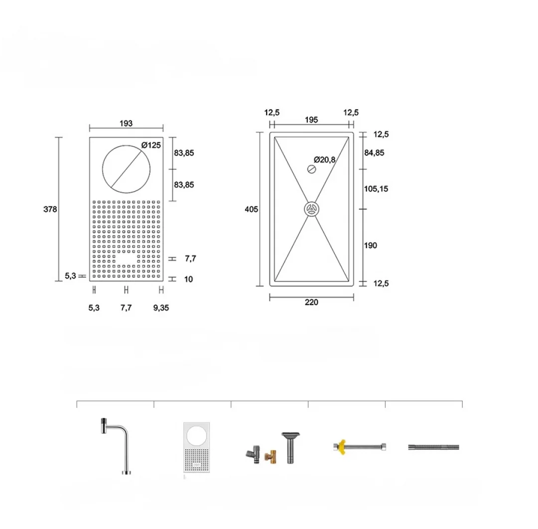 Schnelle SCH-4022X bardak yıkama seti, 40x50 cm ölçülerinde özel formda tasarlanmıştır. Bu ideal boyut, çoğu mutfak evyesine kolayca monte edilebilmesini sağlar. Setin derinliği ise 20 cm'dir, bu da bardak yıkama işlemi için ideal bir derinlik sunar.