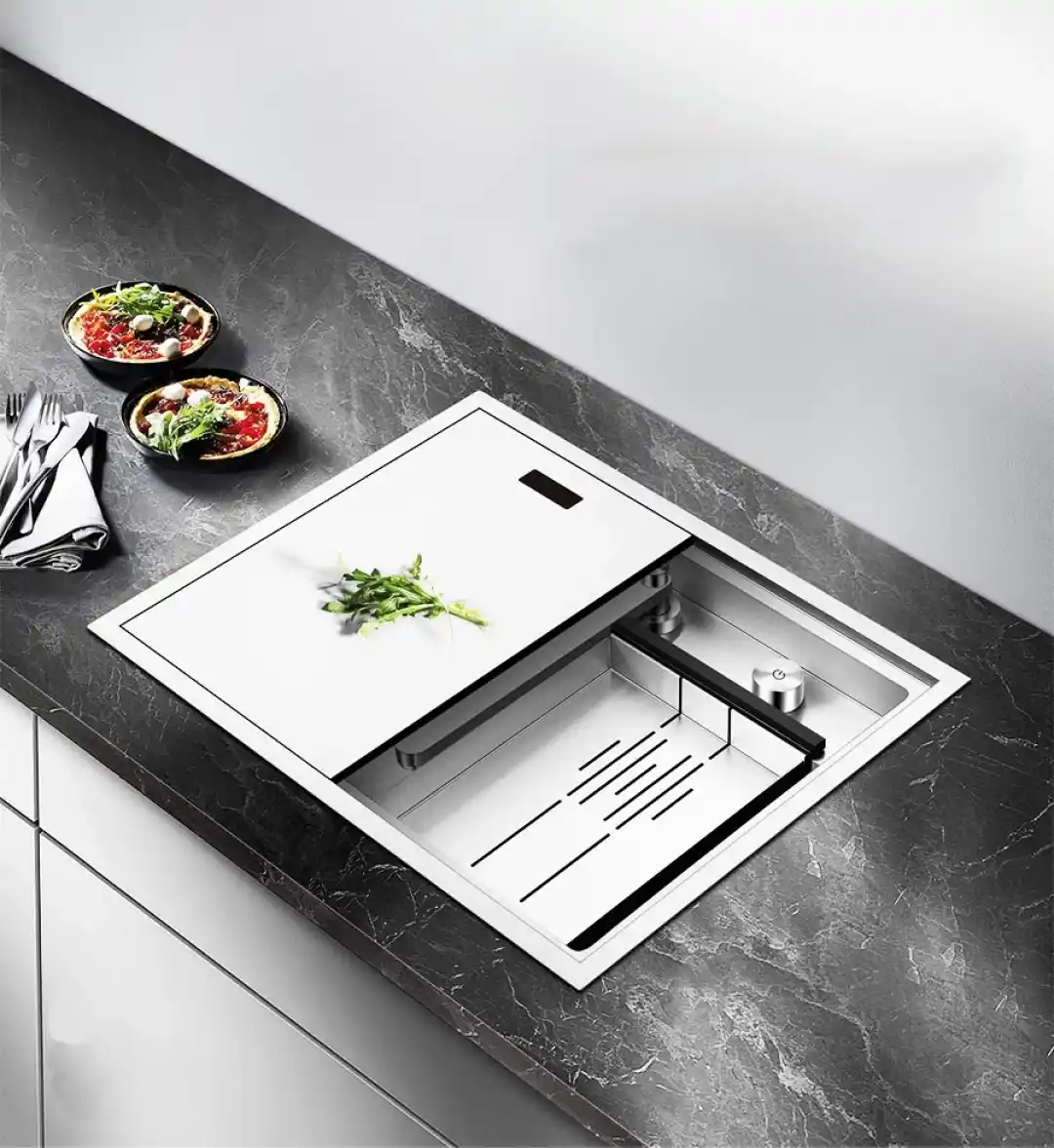 60 cm genişlik, mutfakta daha ferah bir çalışma alanı sunar. Büyük tencere, tava ve diğer mutfak eşyalarını rahatça yıkayabilir, aynı anda birden fazla işi yapabilirsiniz. Ayrıca modern mutfak dolapları ile uyumlu ölçüler sunar.