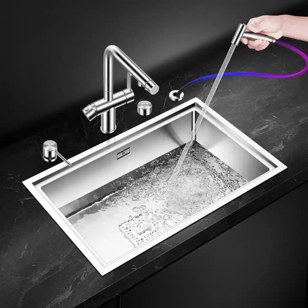 Ürünün bir diğer dikkat çeken özelliği ise sessiz kullanım sunması. Kalın malzeme kullanımı ve özel ses yalıtım teknolojisi sayesinde, suyun hazneye çarpma sesi absorbe ediliyor ve daha sessiz bir kullanım deneyimi sunuyor. Bu özellik, özellikle açık mutfak planına sahip evlerde büyük önem taşıyor.
