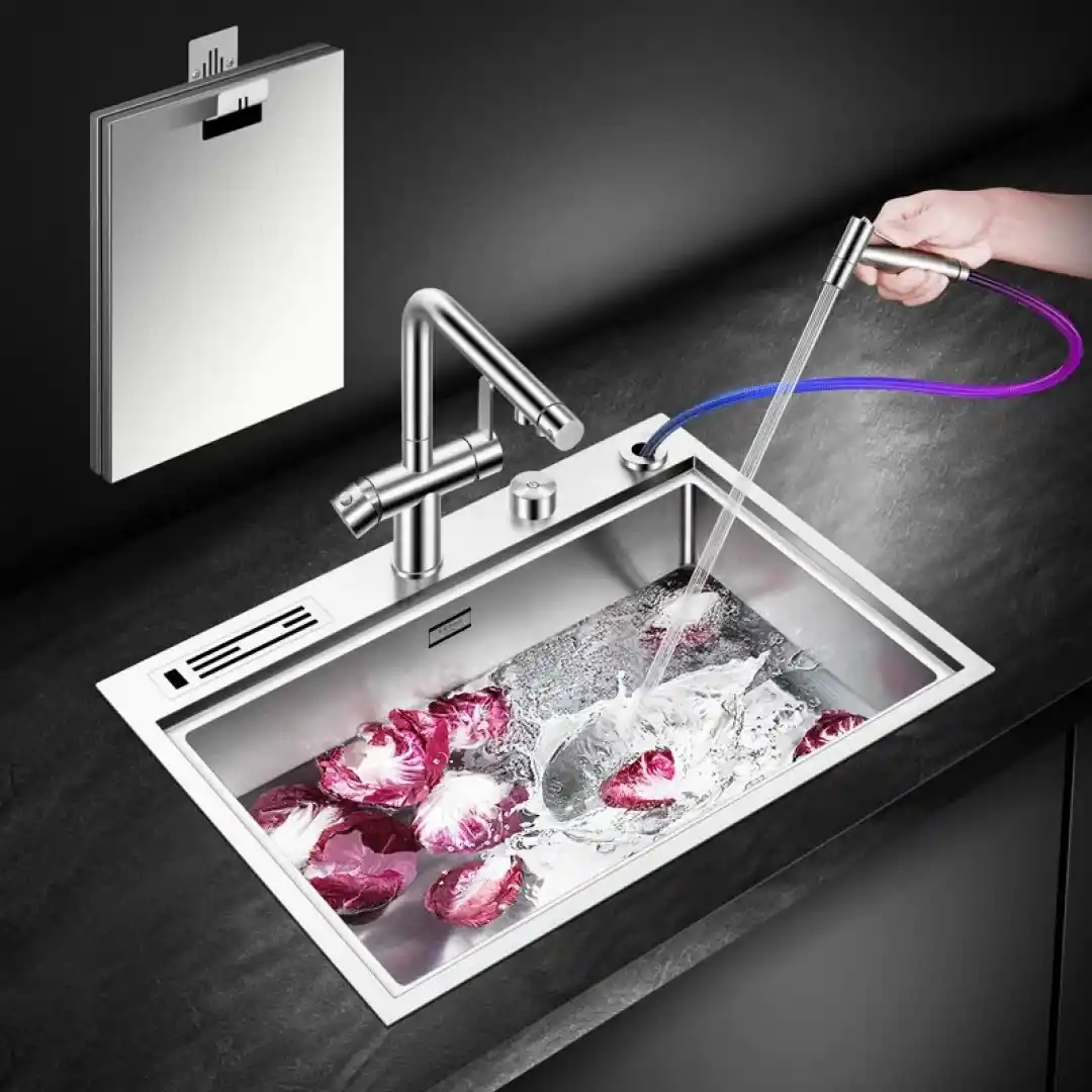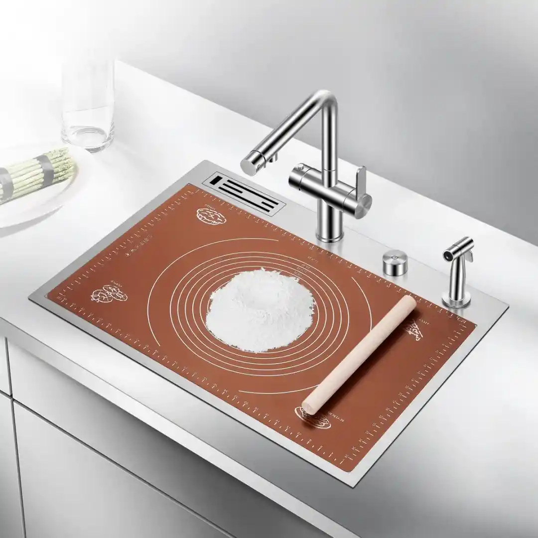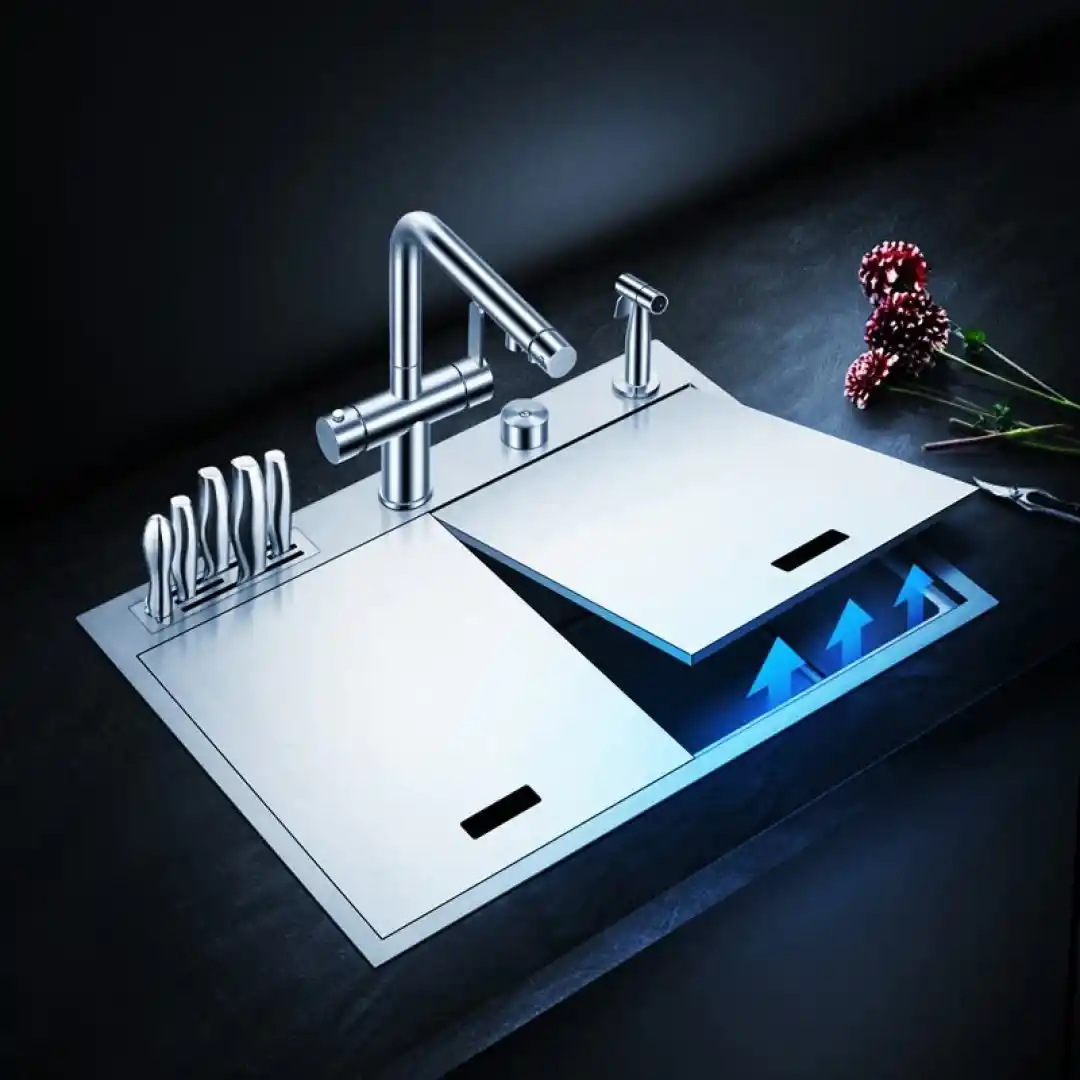 Ürünün bir diğer dikkat çeken özelliği ise sessiz kullanım sunması. Kalın malzeme kullanımı ve özel ses yalıtım teknolojisi sayesinde, suyun hazneye çarpma sesi absorbe ediliyor ve daha sessiz bir kullanım deneyimi sunuyor. Bu özellik, özellikle açık mutfak planına sahip evlerde büyük önem taşıyor.