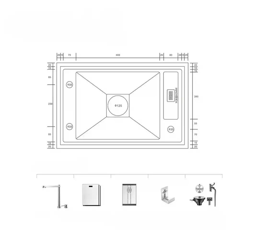 Eviyenin kenarlarındaki damlatma önleyici tasarım, suyun tezgâha veya yere damlamasını engelleyerek mutfağınızın daha temiz kalmasına yardımcı olur. Eviyenin yuvarlatılmış köşe tasarımı ise hem görsel olarak yumuşak bir geçiş sağlar hem de temizlik kolaylığı sunar.