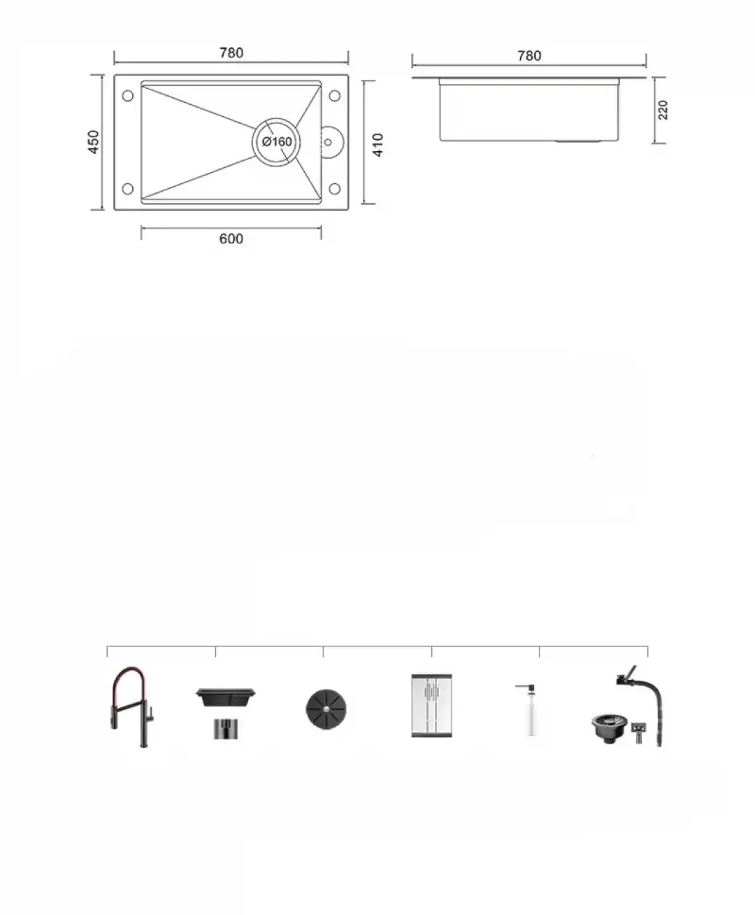 Schnelle SCH-7845NX, 78 cm genişliğinde, tek haznelİ lüks bir mutfak evyesidir. Modern mutfak dolaplarıyla mükemmel uyum sağlayan boyutları ve minimalist tasarımı ile dikkat çeker.
