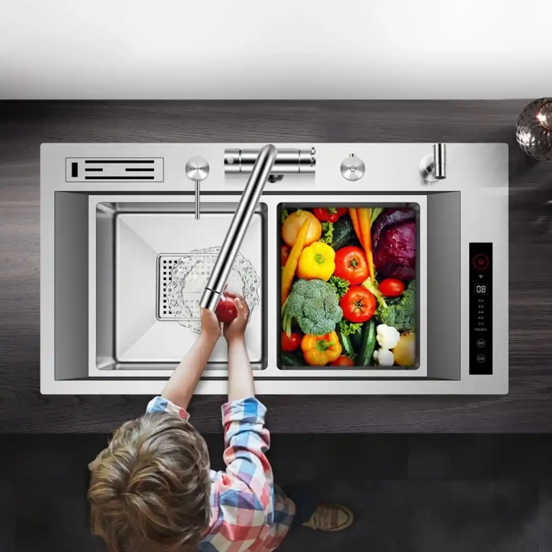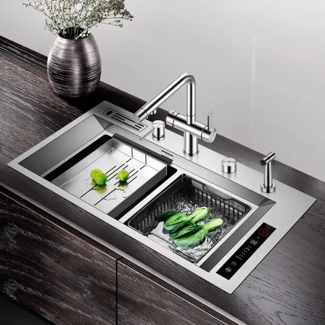 Evye yüzeyinin düz yapısı ve PVD kaplama sayesinde, kir ve su lekeleri yüzeye tutunmaz. Bu özellik, evyenin hijyenik kalmasını sağlar ve temizlik süresini minimuma indirir. Ayrıca, otomatik sifon sistemi sayesinde su birikintileri oluşmaz, böylece bakteri oluşumu engellenir.