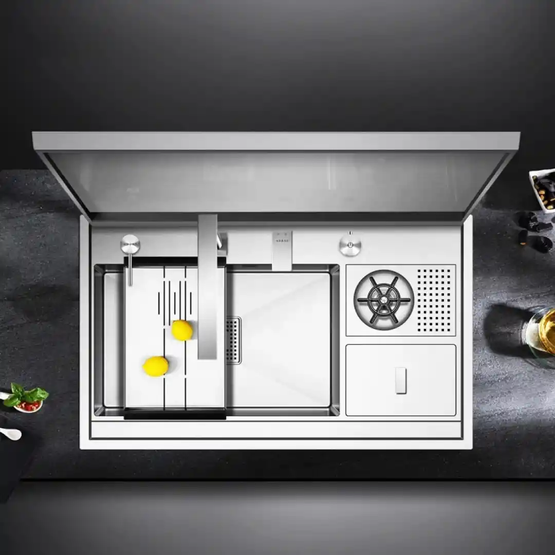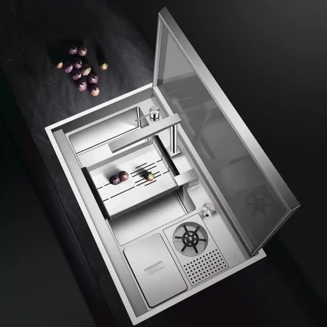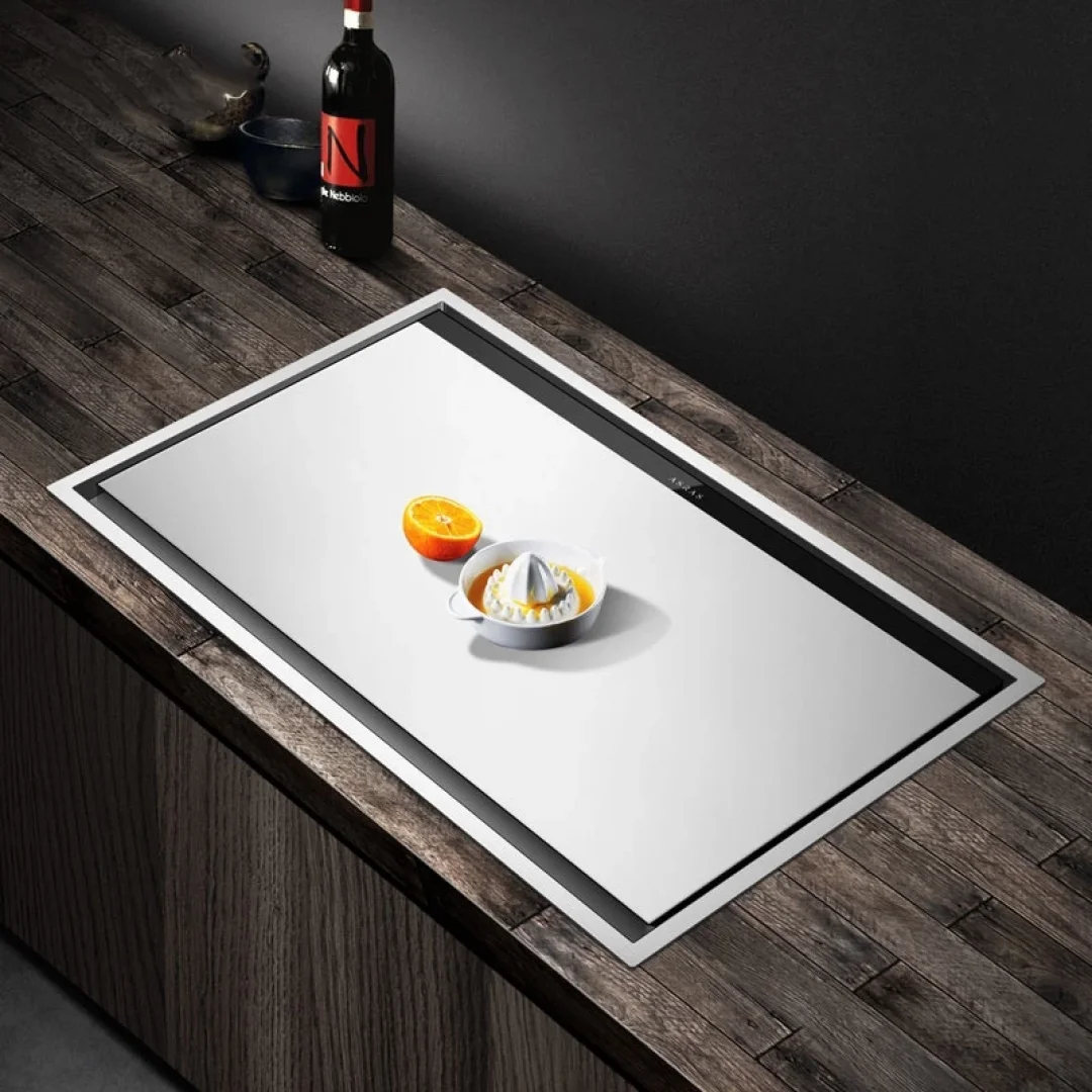 Evye yüzeyinin düz yapısı ve PVD kaplama sayesinde, kir ve su lekeleri yüzeye tutunmaz. Bu özellik, evyenin hijyenik kalmasını sağlar ve temizlik süresini minimuma indirir. Ayrıca, otomatik sifon sistemi sayesinde su birikintileri oluşmaz, böylece bakteri oluşumu engellenir.