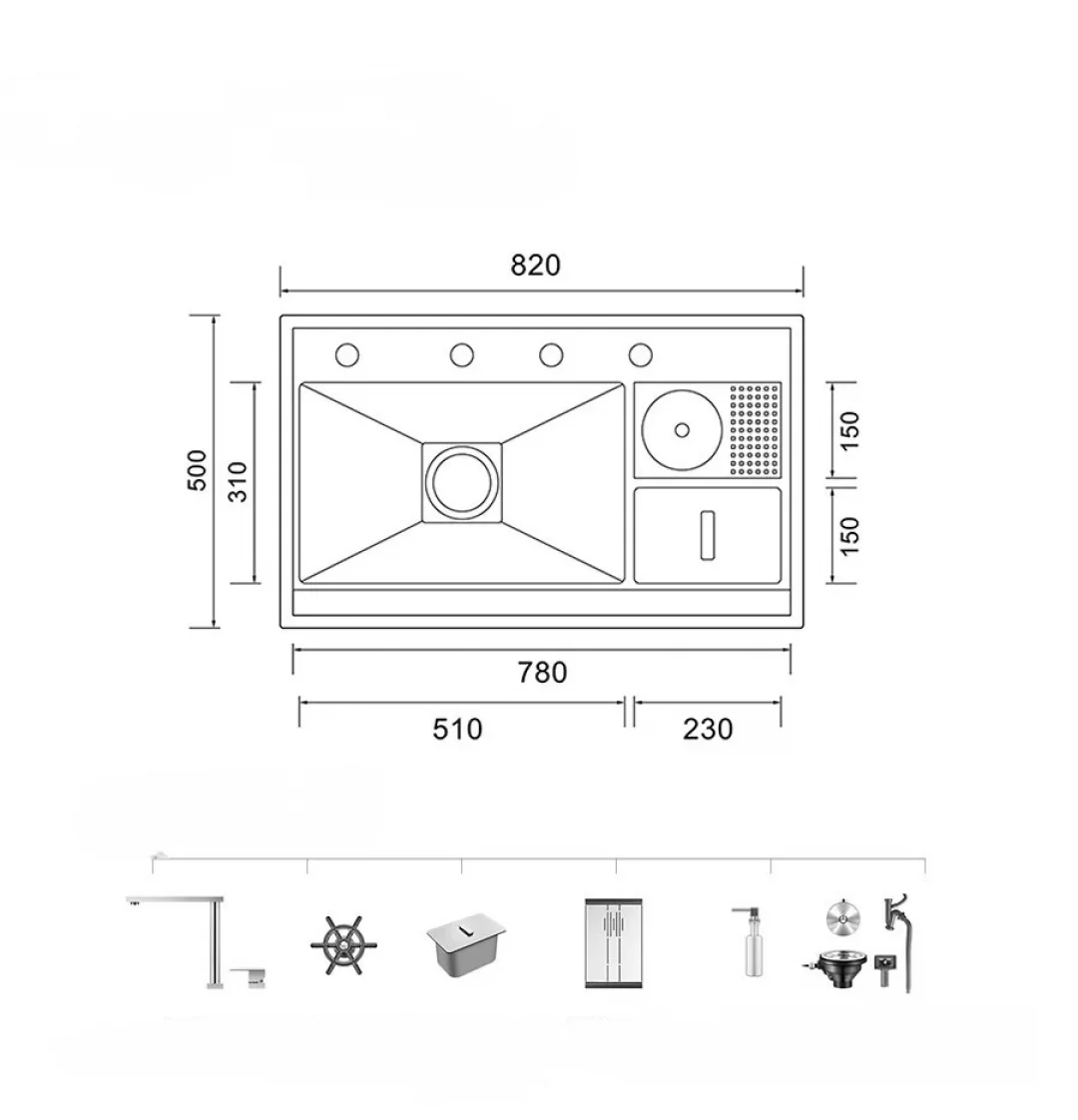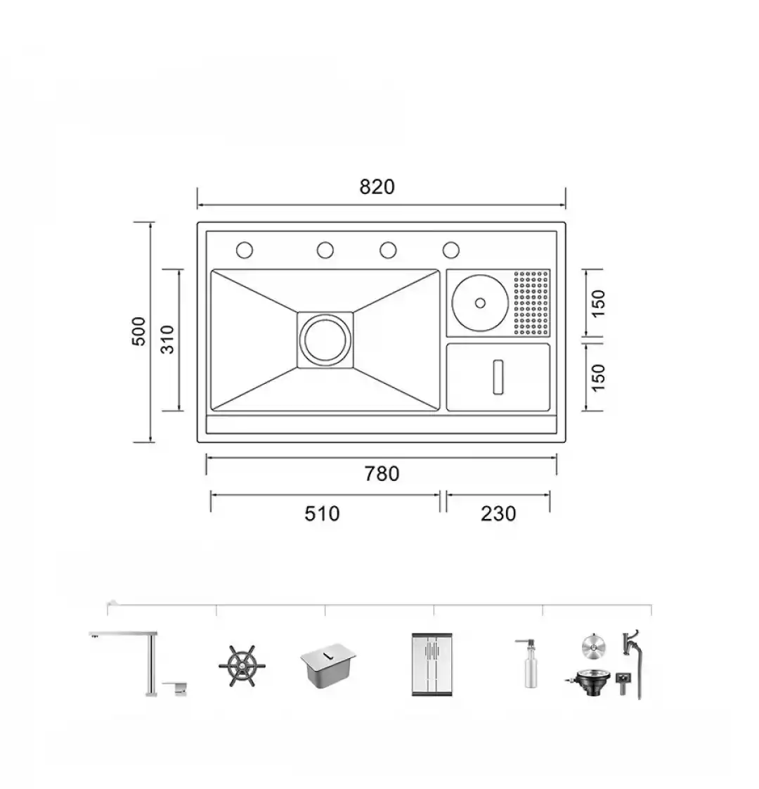 82 cm genişliğindeki bu evye, geniş iç hacmi ile büyük tencereleri ve tabakları rahatlıkla yıkamanıza olanak tanır. Yıkama kabı, bardak yıkama aparatı, çöp bölmesi, sıvı sabunluk ve otomatik sifon gibi ek özellikler, mutfakta pratik kullanım sunar. Otomatik sifon sistemi sayesinde suyun tahliyesini zahmetsizce sağlayabilirsiniz.