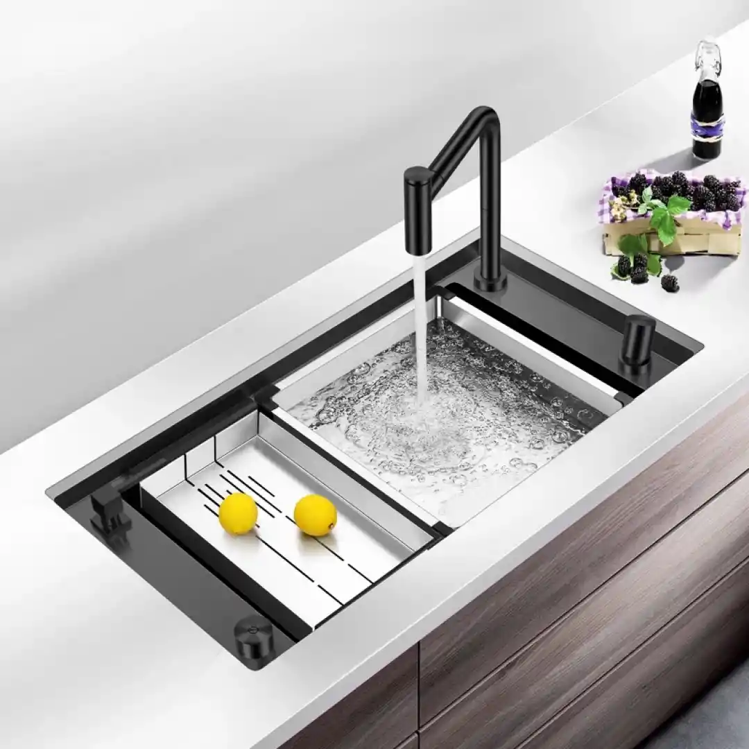 Evye yüzeyinin düz yapısı ve PVD kaplama sayesinde, kir ve su lekeleri yüzeye tutunmaz. Bu özellik, evyenin hijyenik kalmasını sağlar ve temizlik süresini minimuma indirir. Ayrıca, otomatik sifon sistemi sayesinde su birikintileri oluşmaz, böylece bakteri oluşumu engellenir.