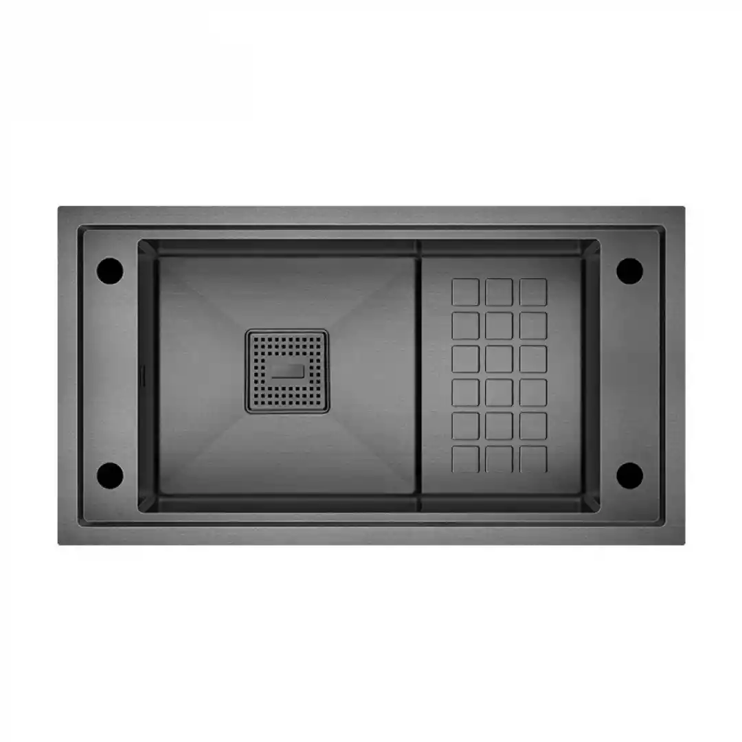 Bu evye, yüksek kaliteli SUS 304 paslanmaz çelikten üretilmiştir. 1.2 mm kalınlığındaki çelik yapısı sayesinde darbelere karşı dayanıklıdır ve uzun ömürlü kullanım sağlar. Ayrıca, PVD kaplama teknolojisi ile çizilmelere ve aşınmalara karşı ekstra koruma sunar.