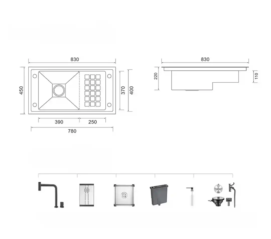 83 cm genişliğindeki bu evye, geniş iç hacmi ile büyük tencereleri ve tabakları rahatlıkla yıkamanıza olanak tanır. Yıkama kabı, süzgeç, sifon otomatı ve sabunluk gibi ek özellikler, mutfakta pratik kullanım sunar. Otomatik sifon sistemi sayesinde suyun tahliyesini zahmetsizce sağlayabilirsiniz.
