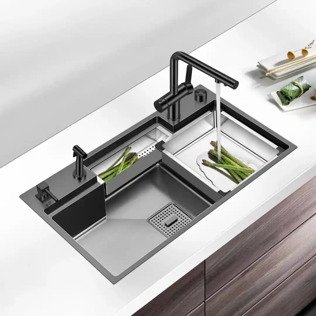 Tüm entegre parçalar evyenin fonksiyonelliğini artırmakla kalmaz, aynı zamanda çalışma alanını daha verimli kullanmanıza olanak tanır. Her şey düşünülmüş, detaylar kullanıcı odaklı tasarlanmıştır.