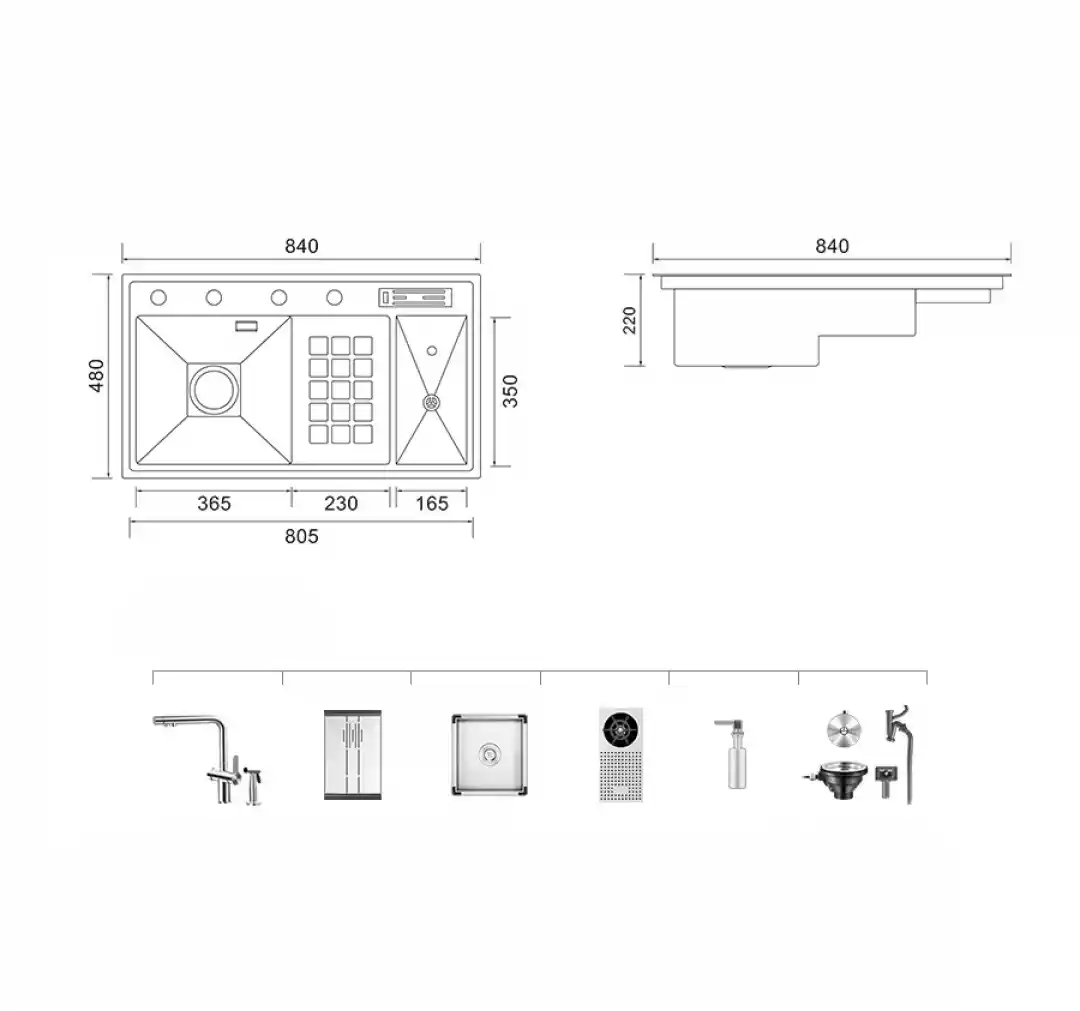 84 cm genişliğindeki bu evye, geniş iç hacmi ile büyük tencereleri ve tabakları rahatlıkla yıkamanıza olanak tanır. Yıkama kabı, süzgeç, sifon otomatı, sabunluk, shuttle, kuruma bölmesi, bıçaklık ve bardak yıkama alanı gibi ek özellikler, mutfakta pratik kullanım sunar. Otomatik sifon sistemi sayesinde suyun tahliyesini zahmetsizce sağlayabilirsiniz.